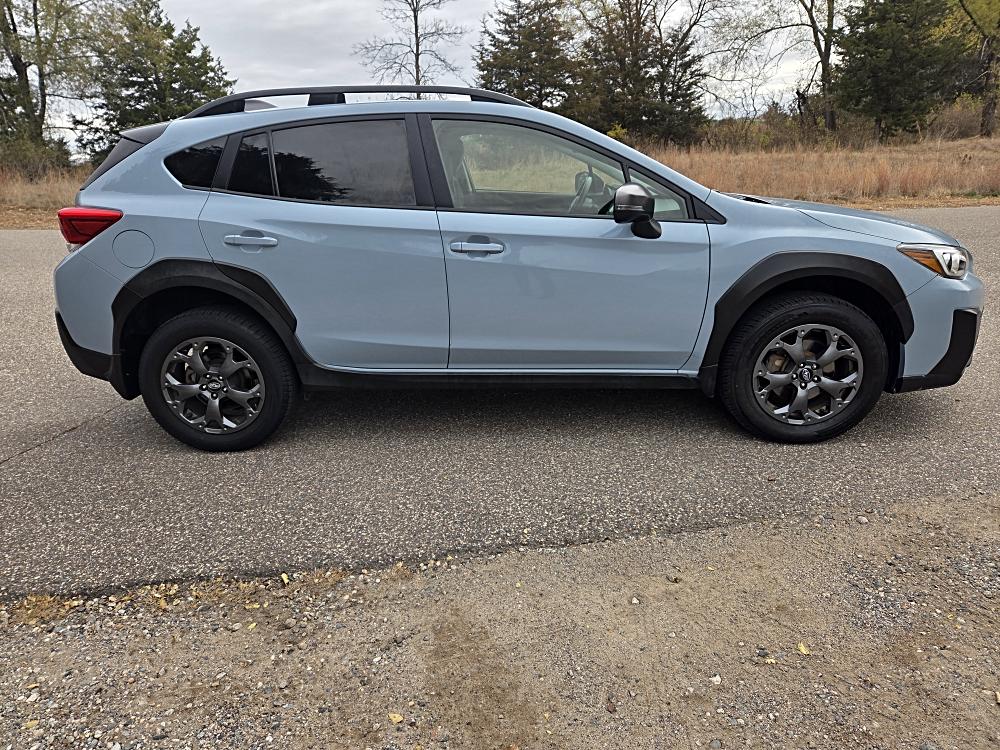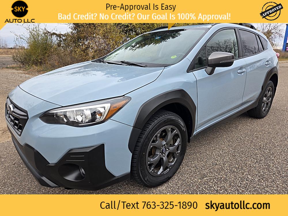 Light blue exterior Crosstrek Sport AWD utilizing the economical 2.5 liter enginewith auto start/stop including Eyesight technology forward collision, distance…
